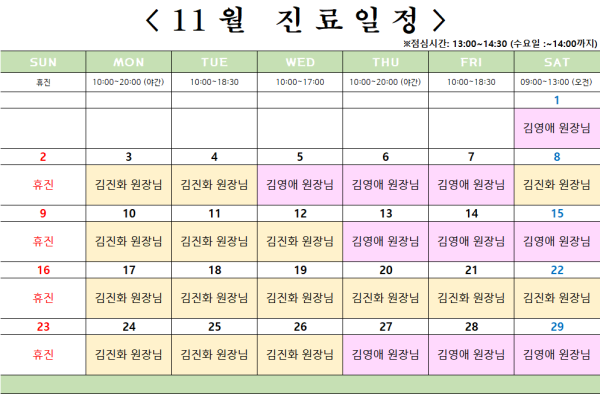 저희 11월 진료일정 안내드립니다.