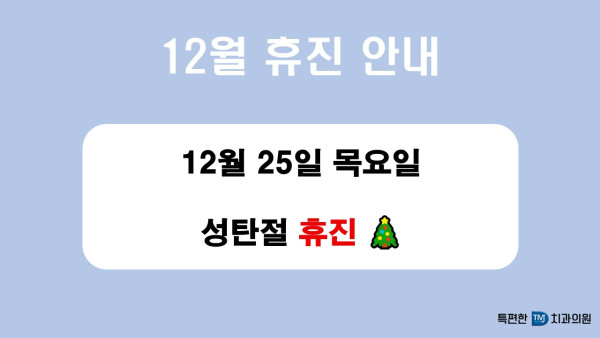 12월 크리스마스 휴진이오니 예약 및 내원에 착오없으시길 바랍니다.