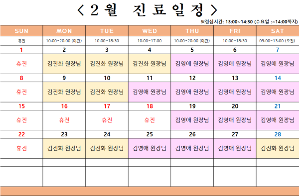 저희 2월진료 일정 안내드리겠습니다.
